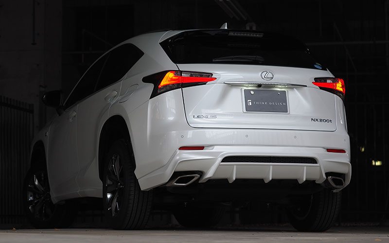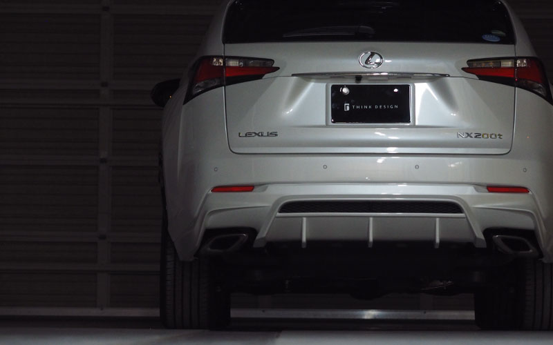 注意事項:もともとNX300h用の純正リアアンダーから型取りを行いNX200tと同じデザインにしようと試みたのですが、ディフューザー部分のラインがうまく取れないことからNX200tのリアアンダーをベースに製品化しております。それにより、ディフューザー下に付く純正アンダーカバーをNX200tのものを流用する事になります。その純正部品が¥4,526 (2015/8現在) となり製品代とは別に別途必要になります。NX200t用のアンダーカバーを使う事によりデザイン良くなる事からですので、ご理解頂けると幸いです。
