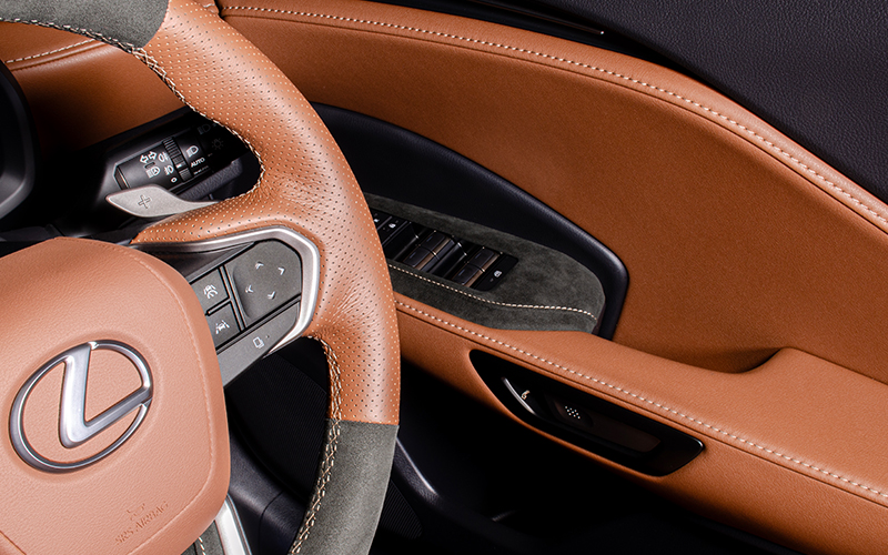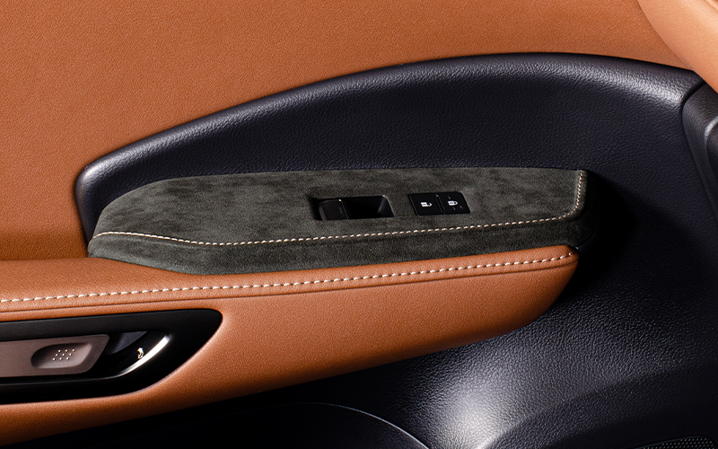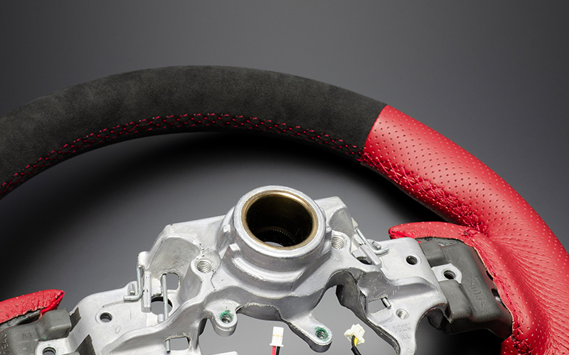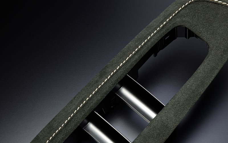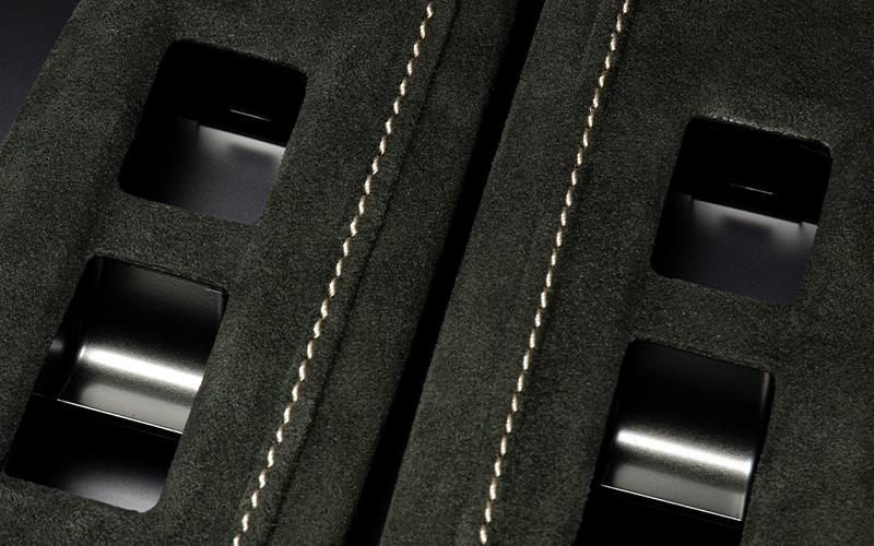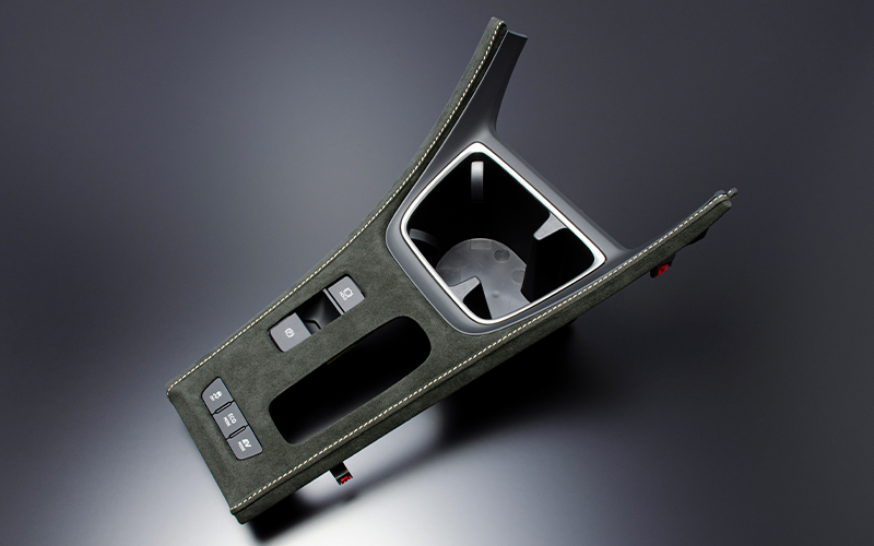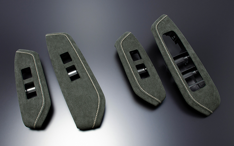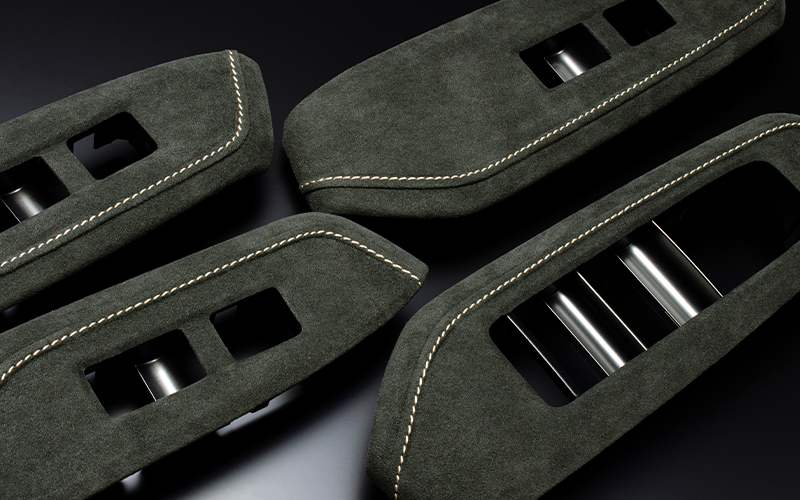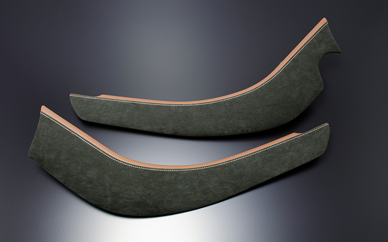 また、ドアアームレストのように単調なデザインから、ステッチを入れてアクセントにしたり、パンチングとのコンビ、他カラーとのコンビなど、ご希望に合わせてワンオフ張り替えが可能です。
