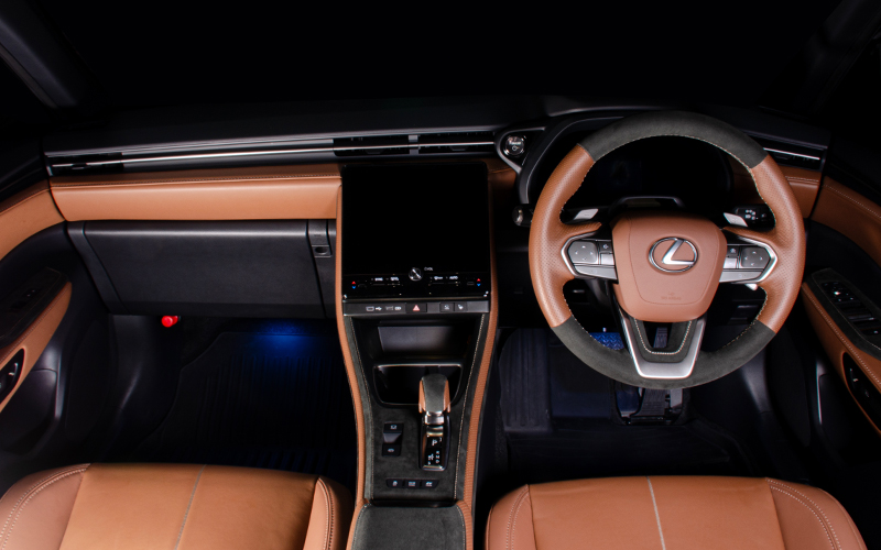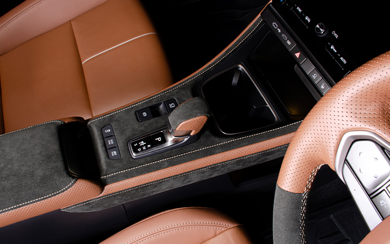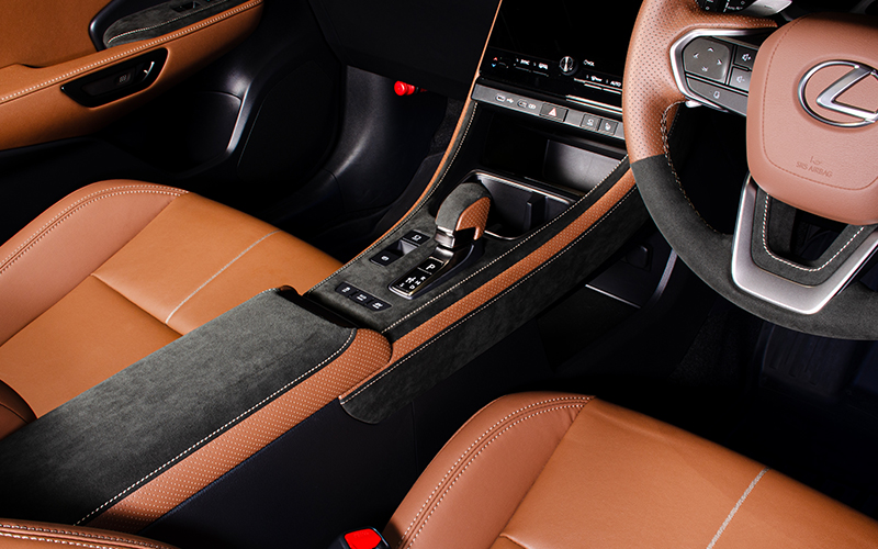 インテリアカラーに合わせて既存ではブラックな部分(シフトノブ・ブーツ・センターコンソールサイドパネルなど)を張り替え可能です。