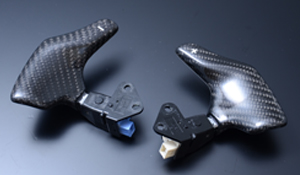 LEXUS ISF パドルシフト ブラックカーボン IS/IS250C/IS-F共通部品のブラックカーボン パドルシフトです。 IS-F純正パドルシフトをベースにブラックカーボンに仕上げました。 カーボン加工後に純正同等の「+」「−」印字を再現するために2次加工にてクリアー塗装封印で仕上げていますので、印字部に段差はありません。 「+」「−」の印字大きさは純正同等に再現しています。