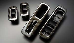 LEXUS RX200t/450h/300 ”CARBON インテリアパーツ” パワーウインドウスイッチパネル ・RX450h/RX200t/RX300共通のブラックカーボンインテリアパーツとなります。 シンクデザイン独自のカーボン加工技術によりウェットカーボン特有の厚みを持たせないように特殊加工しておりますので、シャープな仕上がりを実現できており見た目の美しさが際立ちます。 何層にも重ねたクリアー層が立体感を出し高級感を演出します。 純正部品を現物加工しておりますので、今お使いの部品と単純に交換するだけです。(上から貼り付ける安価な製品ではありません)