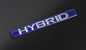 HYBRIDロゴをダークブルーベースの中にメッキエンボス加工を施した汎用エンブレム。両面テープで貼付けるタイプですので、好きな所に気軽に装着出来ます。