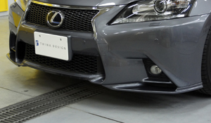 目立つためのスポイラーではなく、F-SPORTバンパーが持つの独特なデザインを生かして、GSをグランドツーリングセダンらしくワイドに強調する事を目的としています。 *取り付けに関して:純正ボルト1カ所・付属のボルトナット3カ所の計4カ所と付属する両面テープでの固定となりますが、付属のボルトナットで固定するために3カ所の穴をバンパーに開ける必要があります。
