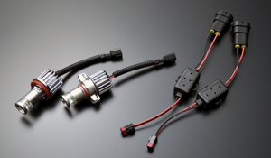 HI-LUMINANCE LED FOG BULB (H11) 一般的なフォグランプLEDバルブのようなLEDの数を多くし発光面積を大きくした眩しいだけの構造ではなく、高輝度LEDの光をLEDバルブ本体の先端裏側にあるレンズに反射させる事により、純正フォグランプの反射板(リフレクター)を利用して前面へ発光させます。 このレンズですが、計算つくされた絶妙な形状をしており、高輝度LEDの光を拡散させる役目を持ちます。この特殊な構造により、純正ハロゲンバルブの配光と近い配光を再現でき、一般的なLEDバルブのようなバラツキのない配光を実現しました。また、ユニット本体が小さいために取り付け場所を選ばす、カプラーオン(プラスマイナスの極性により配線の組み込みが必要です)で取り付けできるという利点もあります。