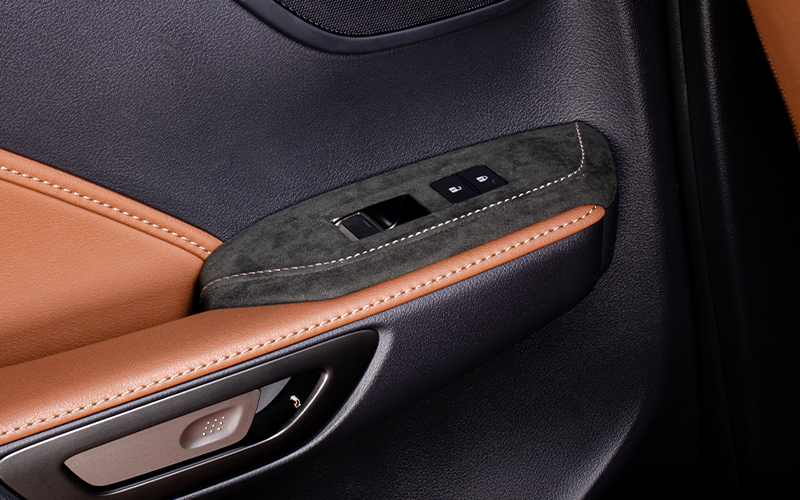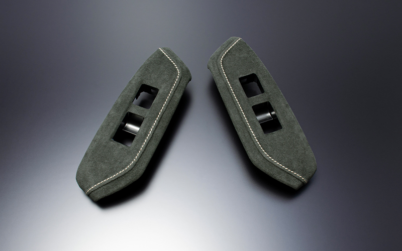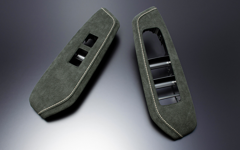 また、ドアアームレストのように単調なデザインから、ステッチを入れてアクセントにしたり、パンチングとのコンビ、他カラーとのコンビなど、ご希望に合わせてワンオフ張り替えが可能です。