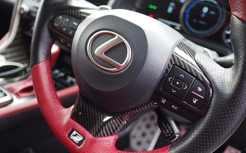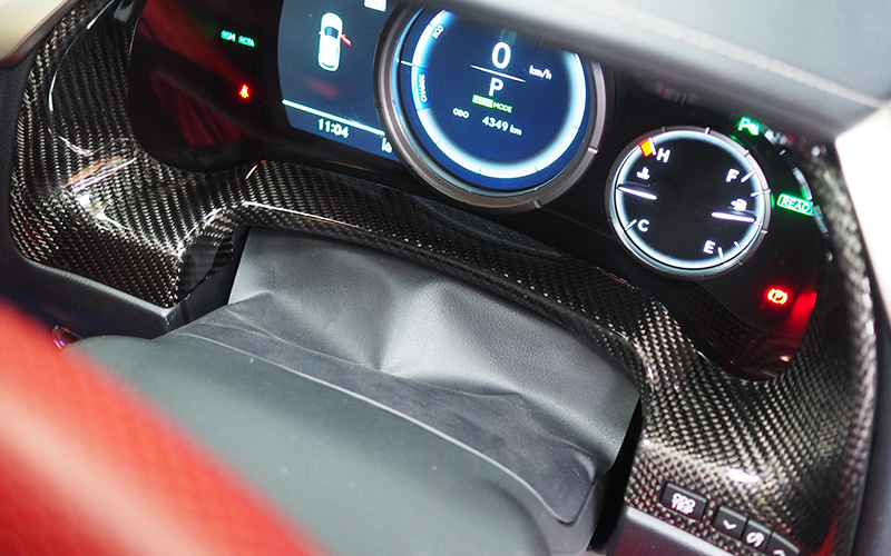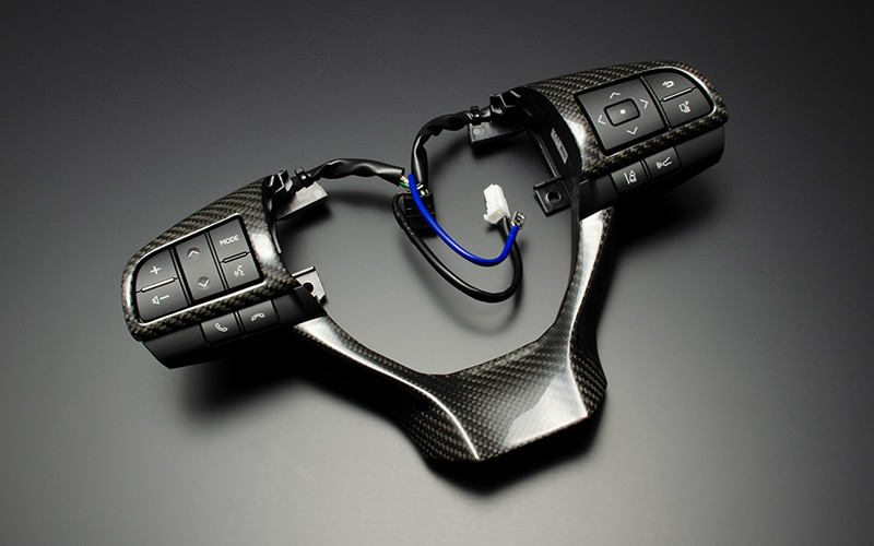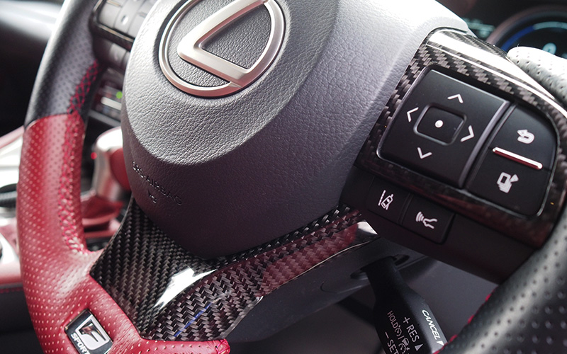 *ステアリングスイッチパネルに関しては、カーボン加工部分の厚みからエアバッグまでの距離が少なくなるためにホーンが鳴りにくくなります。また、グレードによってスイッチの種類が異なりますので、
