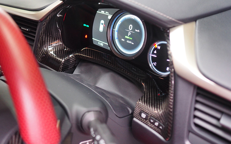 シンクデザイン独自のカーボン加工技術によりウェットカーボン特有の厚みを持たせないように特殊加工しておりますので、シャープな仕上がりを実現できており見た目の美しさが際立ちます。
