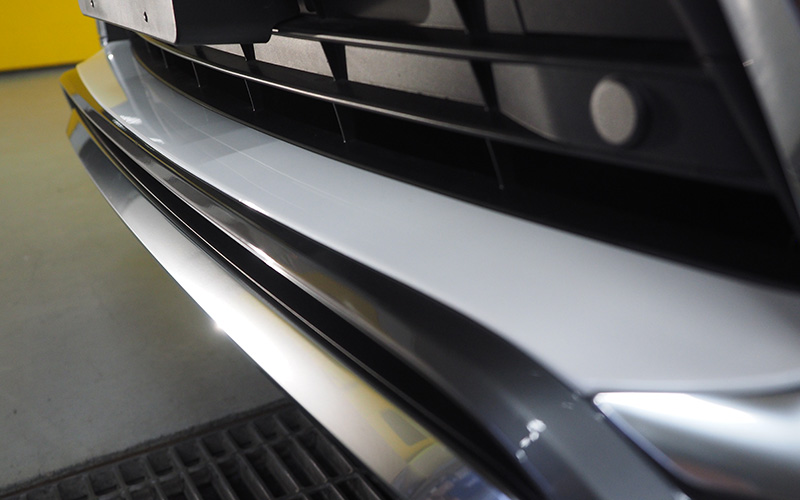 当初はいつものように見栄えが良く見えるフロントリップスポイラーを開発する予定でしたが、一直線のバンパー下部からデザインするのも難しく断念。そこで、優れたデザインのF-SPORT純正フロントリップスポイラーを移植するために今回の製品を開発しました。ボディ同色での仕上げも可能ですが、グリル近似色のグリルガンメタでの仕上げも設定致しました。塗装済み品をご注文の場合は、ボディカラーをご指定いただくか、「グリルガンメタ」とご指定ください。 注:ボディカラーによってはお受け出来ない場合もあります。