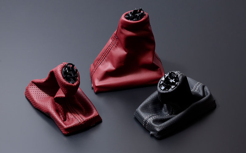 シフトノブ・シフトブーツ・マウスに関しては、グレードに関わらずシートカラーと同色になっていません。(マウスに関しては革では無く材質がゴムです)そこで、インテリアに合わせて(シートカラーに合わせて)同色やパンチングなどで張替えて。統一感と高級感を出す目的のプランです。純正は合皮ですので、本皮となり触り心地も上質です。