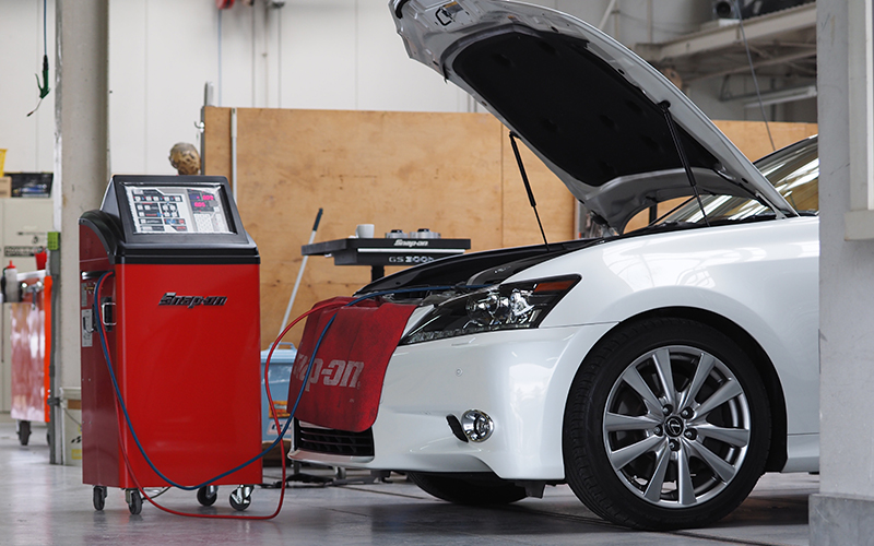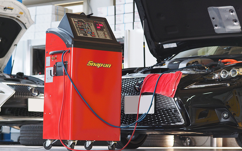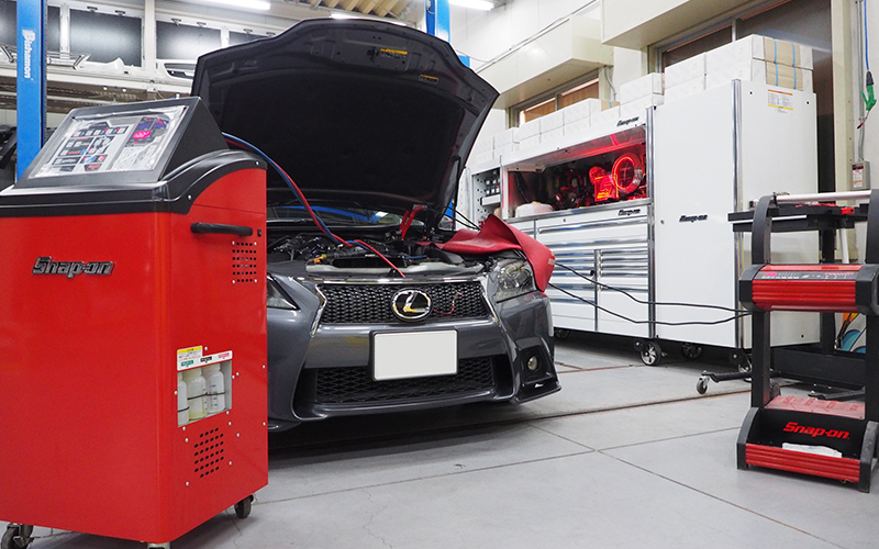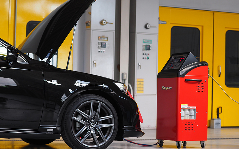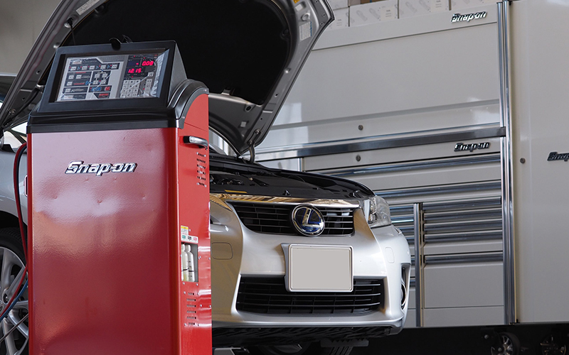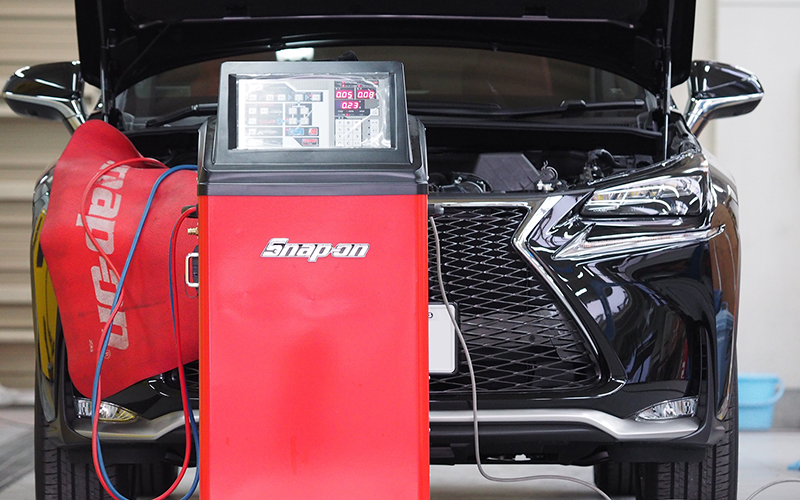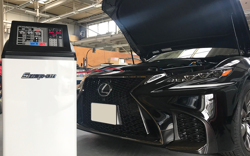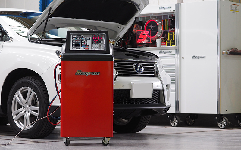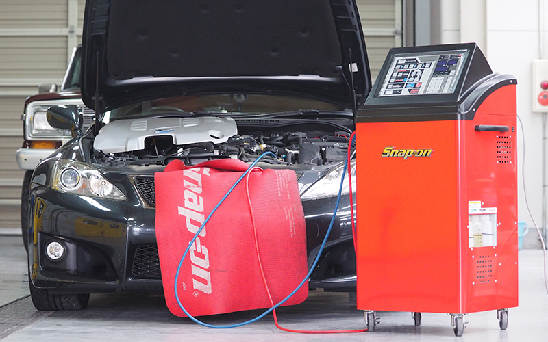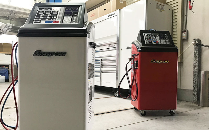 SNAP-ONのPS134[カーエアコンサービスステーション]を2014年に導入して2018年現在、1500台以上の施工実績があります。