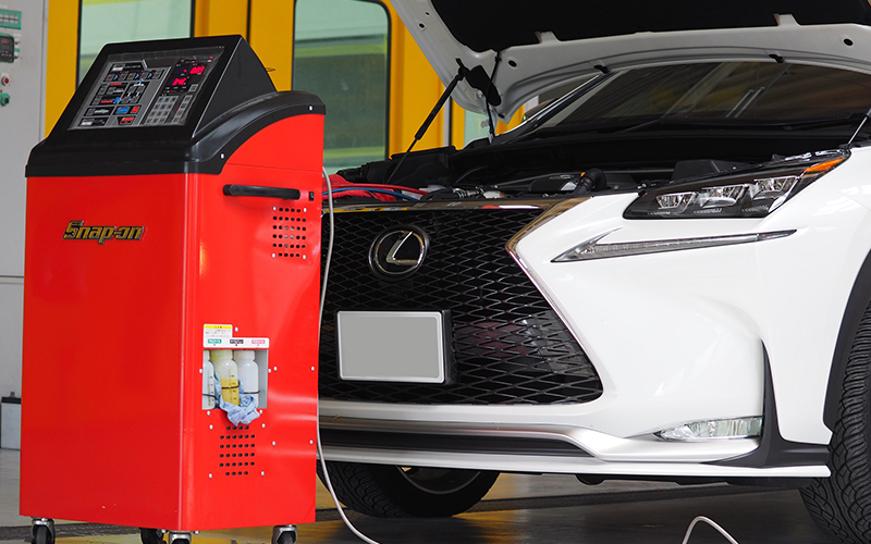 カーエアコン用冷媒としてHFC-134a が広く使用されているところ、近年、 新たな冷媒として HFO-1234yf が開発され、その実用化が進んでいます。レクサス LSでも採用されたことから今後発表されるレクサスも順次R1234に変更される事が予想されるために専用の機材を導入しました。R134と同様に対応可能なのですが、R1234のガスがまだ需要が少ないためにガスそのものの価格が高額です。そのため、R134と価格設定が異なりますので、ご注意下さい。