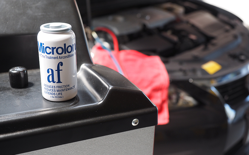 ¥12,000の施工料に含まれるSUNOCOの添加剤とは別に、Microlon(マイクロロン)の添加剤も車種によりお勧めしております。車種によりもともとのエアコンの効きに差がありますので、効きの良く無い車種(RX・CT・HSなど)に関しては追加したほうが効果的です。