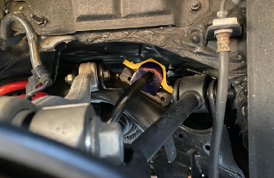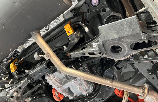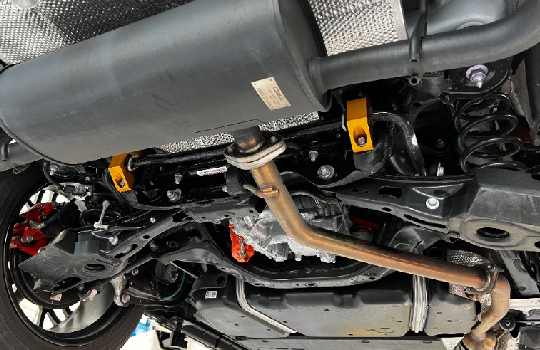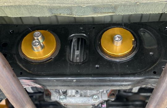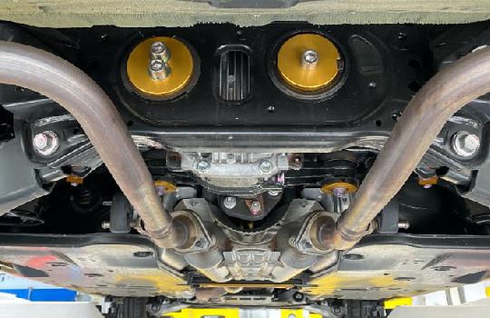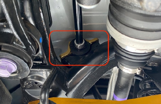 これにより純正スタビがしっかり仕事をしますので、サスペンションメンバの強化にもつながります。