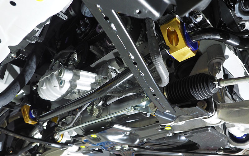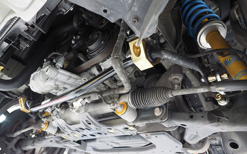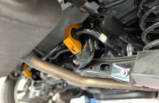 スタビライザー・スタビリンク・スタビブッシュなどを強化した際には、強度のない純正スタビブラケットへの負担がかかります。そこで、スタビブラケットを強化することによって、スタビライザーの作動を逃す事無く、ダイレクトに導きます。